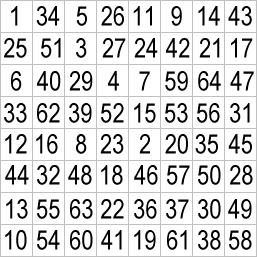 When you mark out the pairs of numbers, 1/64, together with their houses, as above, you get -