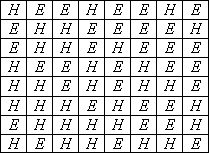 The top four lines have 5E to 3H; the bottom four 5H to 3E. Scanning the columns from left to right, the first four have 5H to 3E, the second four 5E to 3H. Q1 and Q2 mirror one another, to a pattern of 8H/8E. Q3 and Q4 also ‘mirror’ one another, but the groupings are 12E/4H and 12H/4E.