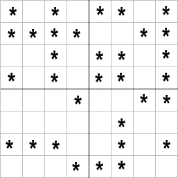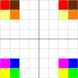 Take each group, flip from left to right, place them in the 16 centre squares, and -