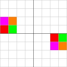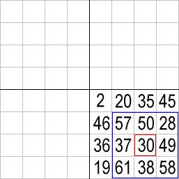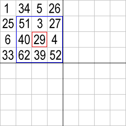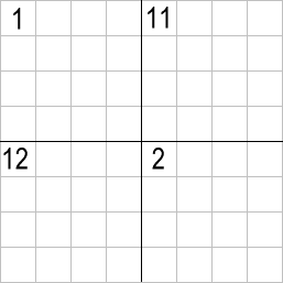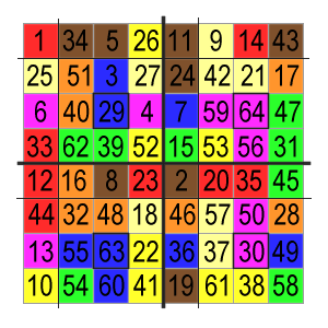 This seemingly random (chaotic?) group of numbers changes when the 8x8 square is divided into four quadrants - Q1, Q11, Q2, Q12 -